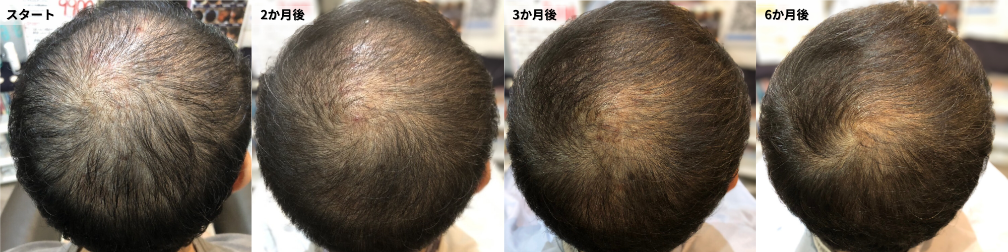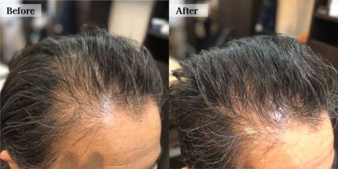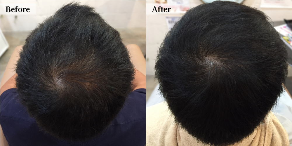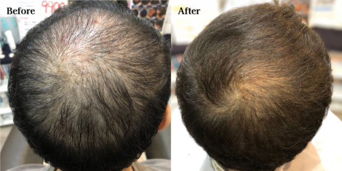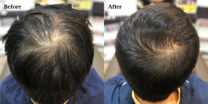 2週間に1回の店での施術と毎日のホームケア及び頭皮マッサージや食事に対するアドバイス等細かなケアーのおかげで、3ヶ月を過ぎたころから変化を実感することができました。