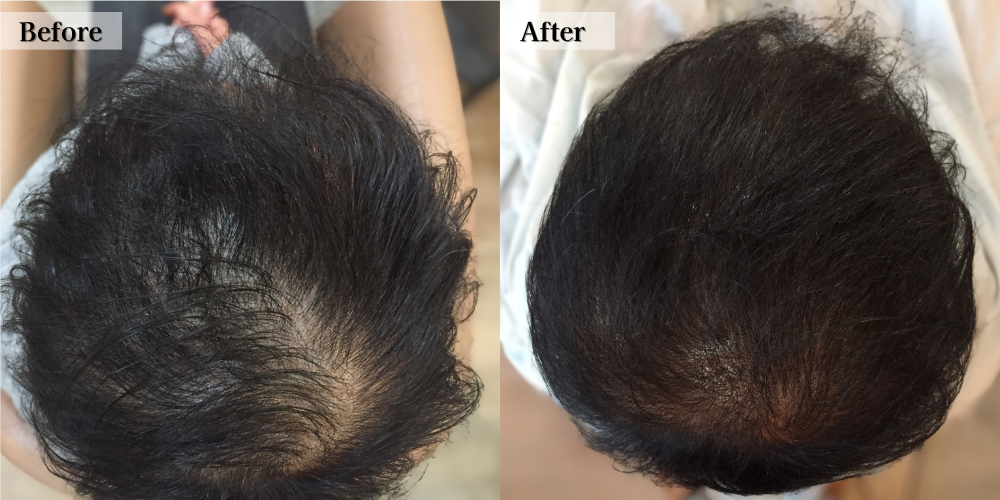 A:自分では髪が薄くなっている自覚があまりなかったが、妻が「ヤバい状態になっているので早く手を打たないと大変なことになる」しつこく言うため、半信半疑で始めました。